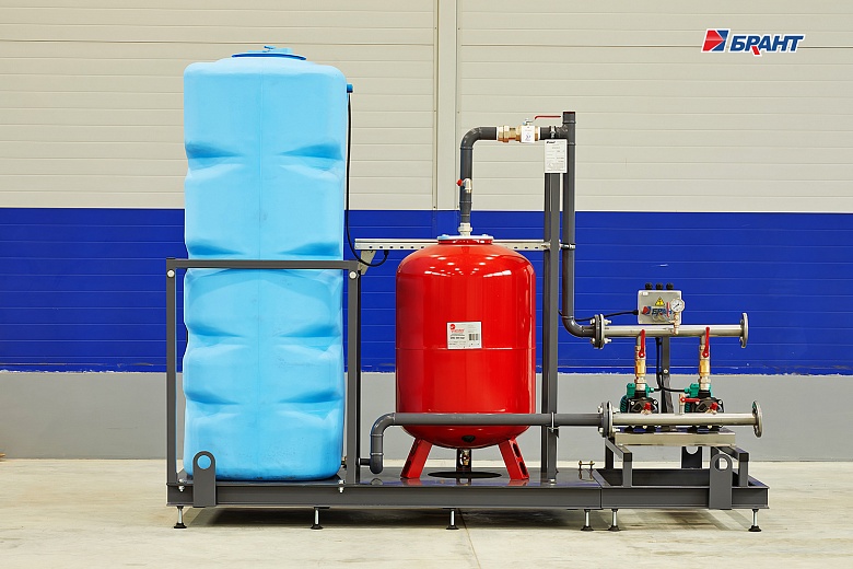 Для выполнения этой задачи был разработан и смонтирован блочный тепловой пункт (БТП), который является важным узлом в системе охлаждения. Так по тех. процессу не допускается останов оборудования, предусмотрено 100% резервирование насосов и теплообменников. Подпитка контура охлаждения выполняется в автоматическом режиме из бака запаса воды, который входит в комплект поставки.
