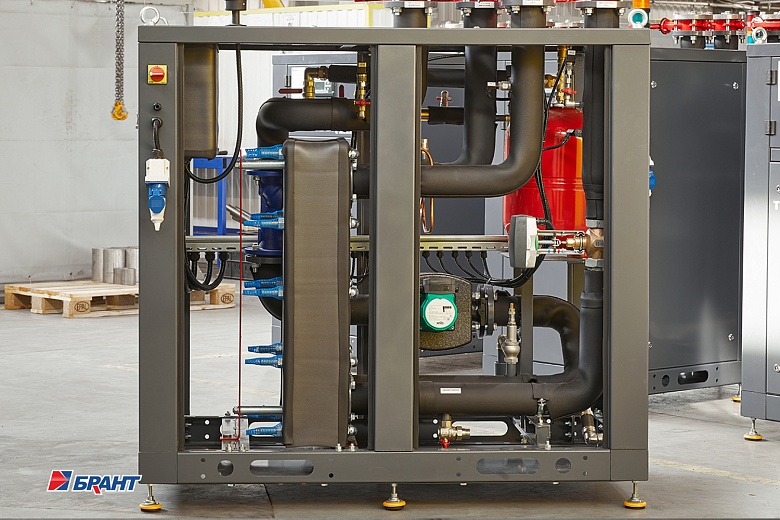 Основной нагрузкой нового производственного логистического комплекса являются системы вентиляции. Тепловая нагрузка на вентиляцию составляет 4555,99 кВт. В качестве теплоносителя внутреннего контура системы вентиляции предусмотрен этиленгликоль. По первоначальному проектному решению подключение систем вентиляции предполагалось по независимой схеме в ИТП. Специалисты компании БРАНТ провели технико-экономическое сравнение и предложили заказчику уникальное решение по децентрализации подключения приточных установок. Основные функции теплового модуля: - Разделение контуров теплоносителей вода и этиленгликоль; - Автоматическое поддержание давления этиленгликоля в контуре вентиляционной установки; - Циркуляция этиленгликоля в контуре вентиляционной установки; - Защита циркуляционного насоса от сухого хода; - Контроль выхода насоса на режим; - Поддержание температуры этиленгликоля в зависимости от температуры воздуха. Прием управляющего сигнала с вентиляционной установки (RS485, 4-20 мА); - Передача сигналов состояния оборудования модуля на шкаф управления вентиляционной установки (RS485); - Контроль линии связи с вентиляционной установкой на обрыв; - Переход в автономный режим поддержания температуры теплоносителя при потери связи с контроллером вентиляционной установки с защитой от размораживания; - Защита вентиляционной установки от недопустимого превышения давления; - Контроль параметров теплоносителя наружного и внутреннего контура с передачей параметров в систему диспетчеризации (RS485 / Ethernet); - Контроль протечек с выдачей аварийных сигналов; - Автономный анализ рабочих параметров системы с выдачей визуальных предупреждений и сигналов аварий в систему диспетчеризации. |