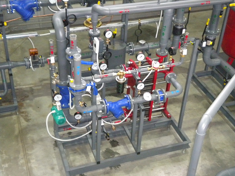 Блочный тепловой пункт. Тепловая нагрузка на отопление 692,4 кВт Тепловая нагрузка на ГВС 401,0 кВт Блочный тепловой пункт выполнен в заводских условиях с полной трубной обвязкой между блоками. Данное решение позволило выполнить монтаж БТП на объекте в рекордные сроки. За три дня сотрудники монтажной организации занесли блоки в помещение ИТП, расставили согласно предоставленной в технической документации завода компоновки, и подключили к тепловой сети и системам теплоснабжения. Детальная проработка компоновки блочного теплового пункта на этапе разработки конструкторской документации позволяет выполнить блоки с учетом всех особенностей помещений сложной конструкция, учесть расположение колонн, перегородок. Блоки разрабатываются с учетом габаритов дверных проемов с учетом маршрута заноса к помещению ИТП индивидуально для каждого объекта. |