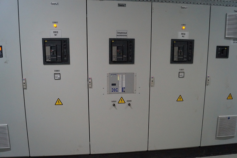 - Автоматическое включение резерва (АВР) выполняется комплектным устройством БАВР производства ООО НПК «Промир». Данное устройство при возникновении любых видов коротких замыканий в цепи основного источника питания и/или отключения головного выключателя позволяет переключать всех потребителей на резервный источник питания за время не более 65 мс, а так же производит измерение текущего значения токов и напряжений; регистрацию дискретных и аналоговых событий; осциллографирование токов, напряжений и дискретных сигналов; непрерывную проверку функционирования и самодиагностику.