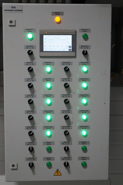- Система автоматического управления реализована на базе двух контроллеров М241 производства Schneider Electric, установленных в шкафу ШАУ. Управление технологическим оборудованием объекта осуществляется в автоматическом и местном режимах. Обмен данными между подсистемами автоматизации организован на базе интерфейса Ethernet протокол Modbus TCP.