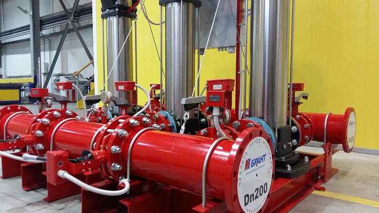 В состав насосной установки входят: Прибор управления пожарный (станция управления насосами), запорная арматура с датчиками положения, пусковые сигнализаторы давления, сигнализаторы давления выхода на режим основных и резервного насосов. Коллекторы выполнены из нержавеющей стали, диаметр присоединения Ду 200 мм.