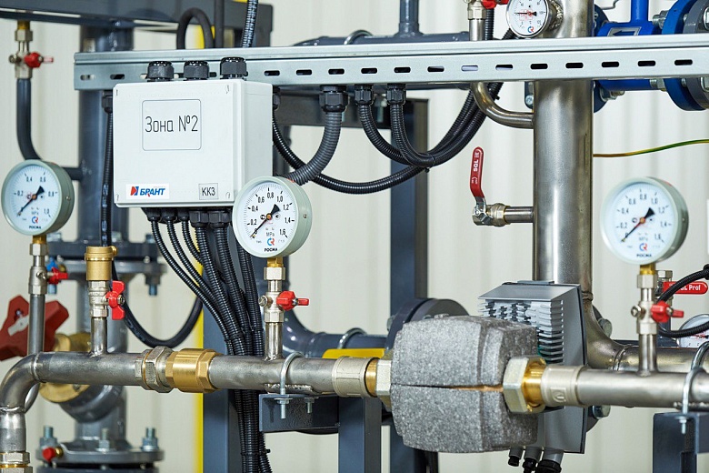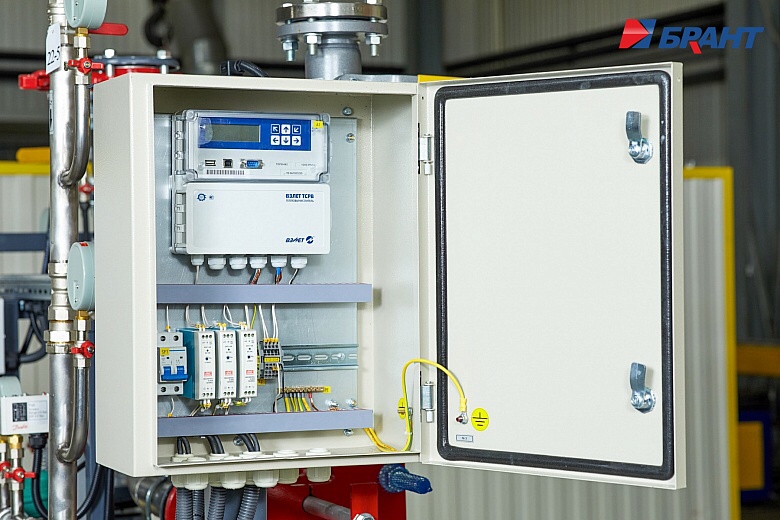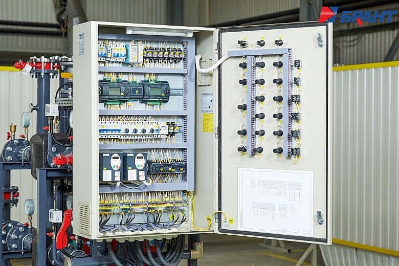На блоках расположены шкафы управления тепловым пунктом ШУТП БРАНТ, управление температурой в подающем трубопроводе системы отопления осуществляется от температуры наружного воздуха с коррекцией по температуре воды в подающем трубопроводе тепловой сети и контролем температуры в обратном трубопроводе тепловой сети.
