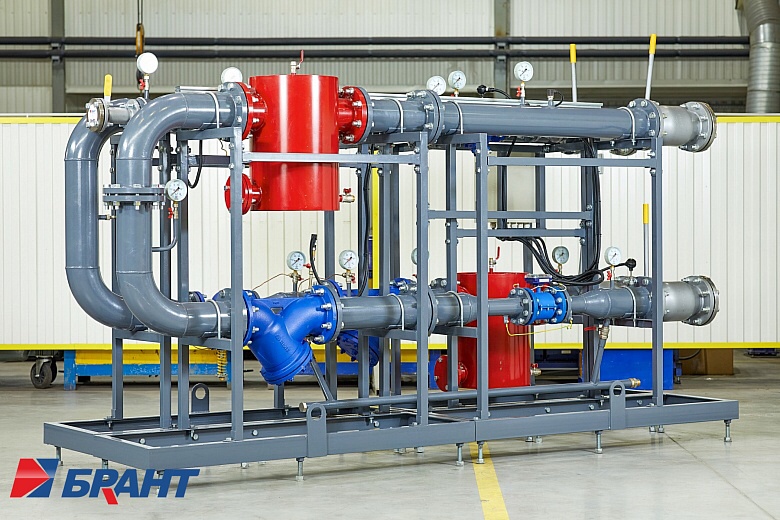 В комплекте блока вся запорная арматура, грязевик, фильтр, расходомеры, КИП и линии дренажа.
