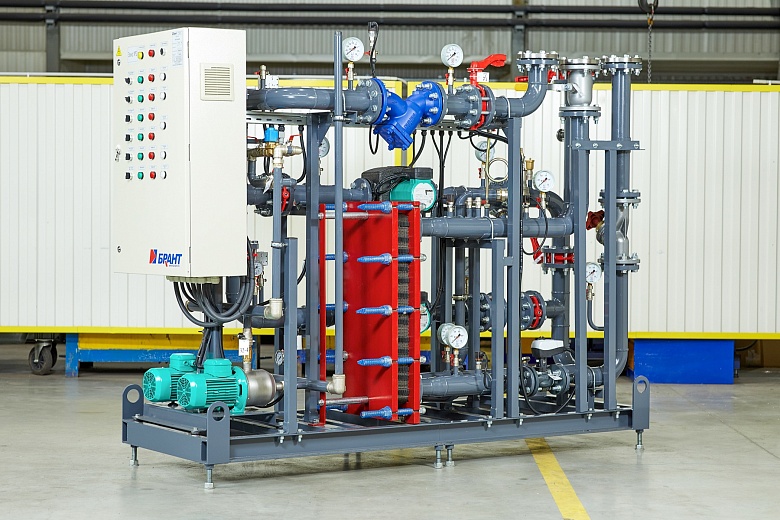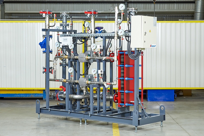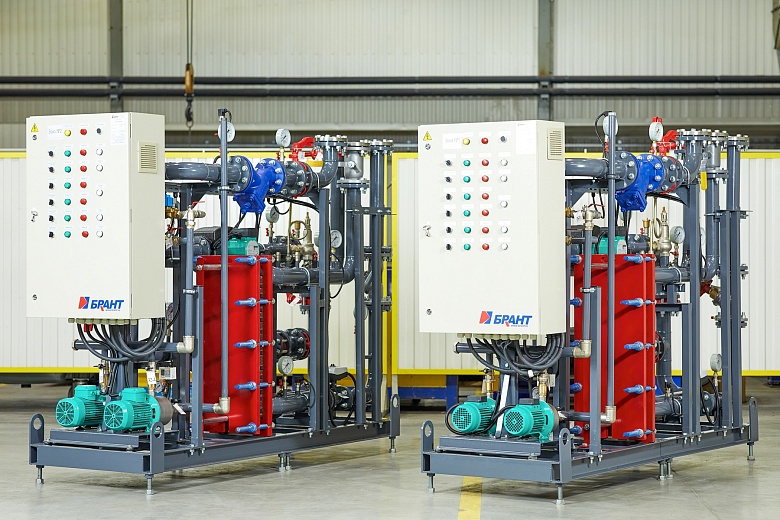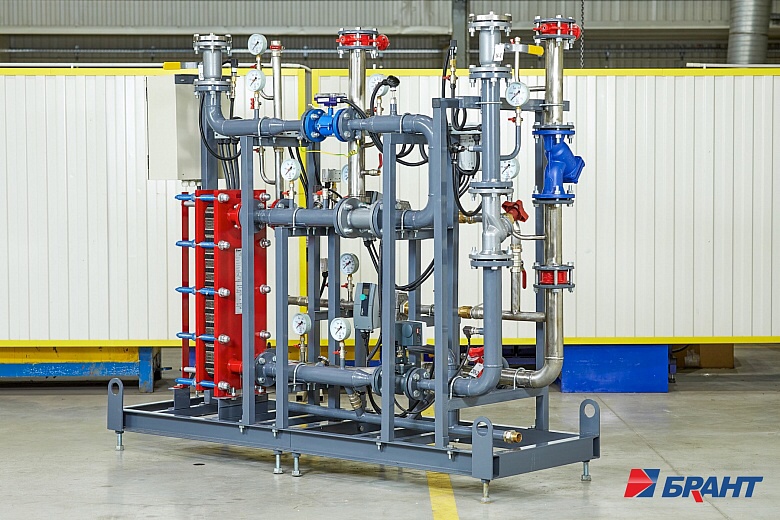 В комплекте блоков теплообменники БРАНТ ТПР 19SH для систем теплоснабжения, запорная арматура, регулирующие, баллансировочные и предохранительные клапаны, циркуляционные и подпиточные насосы с индивидуальной защитой от сухого хода, КИП и линии дренажа.
