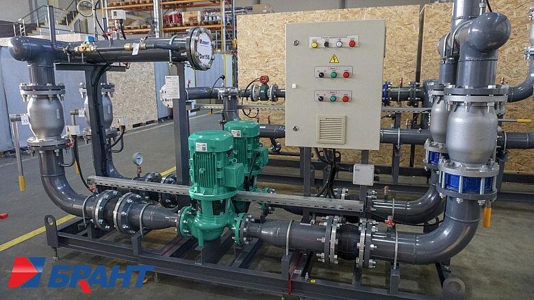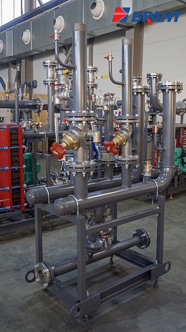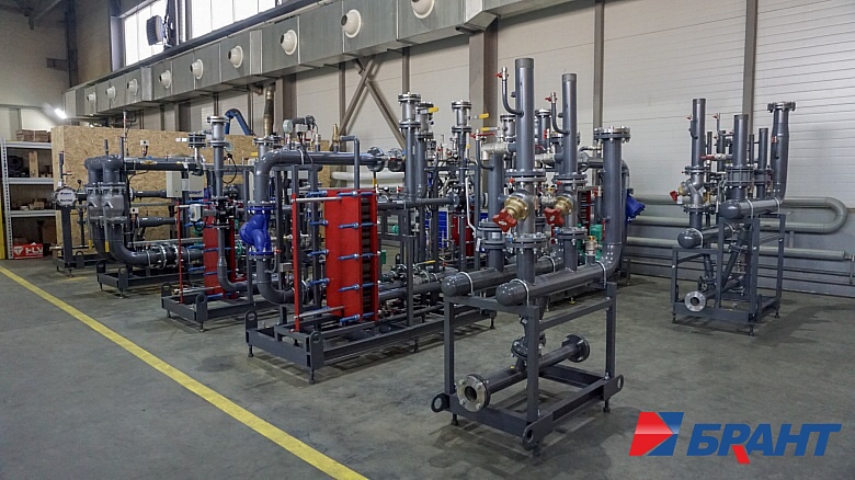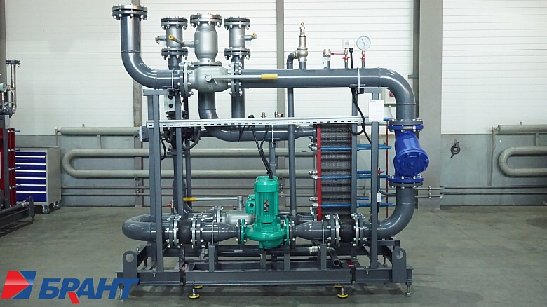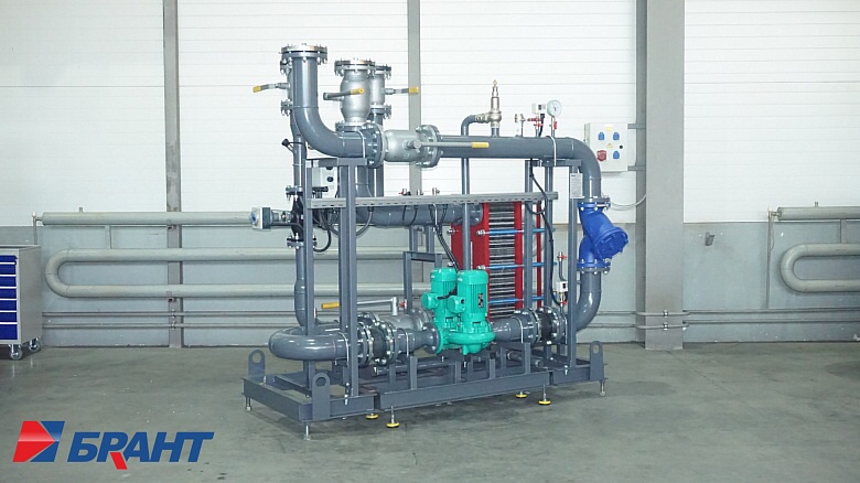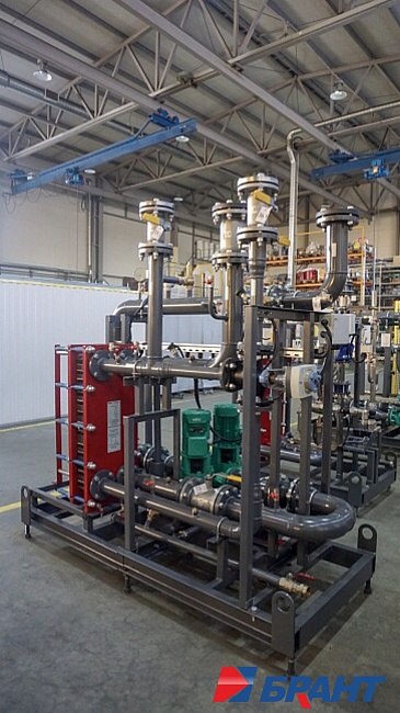 В комплекте блоков теплообменники БРАНТ ТПР 19SH для систем теплоснабжения, запорная арматура, регулирующие, баллансировочные и предохранительные клапаны, циркуляционные и подпиточные насосы с индивидуальной защитой от сухого хода, КИП и линии дренажа.