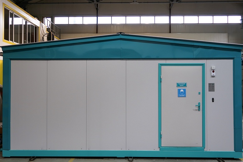 | Тепловой пункт имеет габариты 7400 х 6000 х 3100 мм. представляет собой утепленной здание из металлоконструкций, обшитое снаружи техслойными сендвич панелями толщиной 100 мм с устройством общей двухскатной фальшкровли. Конструктивно Тепловой пункт разделяется на три транспортируемых модуля размерами 2400 х 6000 х 3100 мм. Суммарная тепловая мощность 11,8 МВт. В том числе Отопление Поселка 1,3 МВт, отопление Завода 10 Мвт, ГВС 0,5 МВт Источником теплоснабжения являются тепло от систем охлаждения 4 газопоршневых электростанций Valdex Energetica, для догрева теплоносителя в зимний период используются 2 котла наружной установки Valdex Thermotechnica. К тепловому пункту подключаются потребители тепла и горячей воды завода и поселка. Тепловой пункт предусматривает Блок ввода, подключение системы теплоснабжения поселка по независимой схеме с узлом коммерческого учета тепла, погодозависимым регулированием температуры в подающем трубопроводе системы теплоснабжения и контролем температуры обратной сетевой воды из системы теплоснабжения, подключение системы теплоснабжения завода по зависимой схеме с узлом коммерческого учета тепла, погодозависимым регулированием температуры в подающем трубопроводе системы теплоснабжения и контролем температуры обратной сетевой воды из системы теплоснабжения. Также подключение системы закрытого ГВС поселка и завода по параллельной схеме с поддержанием температуры в подающем трубопроводе, учетом количества воды подаваемой в систему ГВС и линиями рециркуляции горячего водоснабжения. В состав модульного центрального теплового пункта также включена система подготовки теплоносителя с химической очисткой для всего комплекса. |