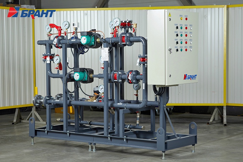 На обратном трубопроводе внутреннего контура установлены два циркуляционных насоса (1 раб., 1 рез.).  Для защиты насосов от сухого хода предусмотрена установка реле давления. Для контроля выхода насоса на рабочий режим предусмотрена установка реле разности давлений. Предусмотрено автоматическое включение резервных насосов при аварийной остановке рабочих.