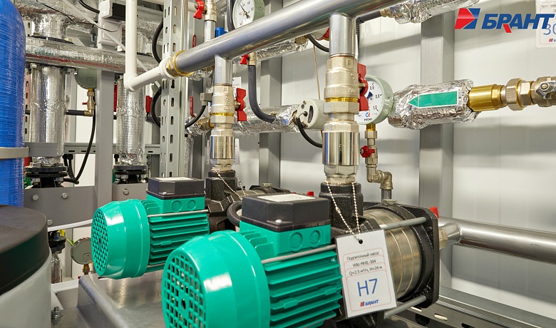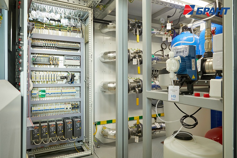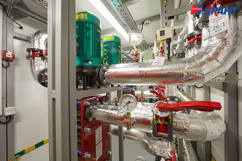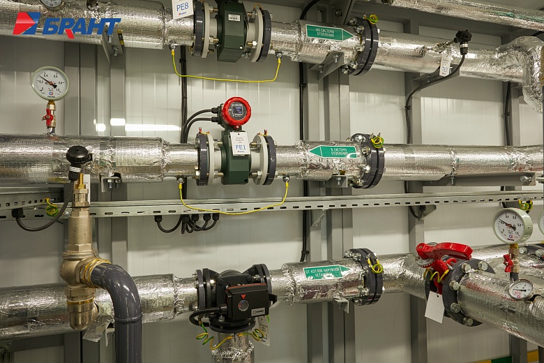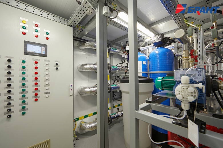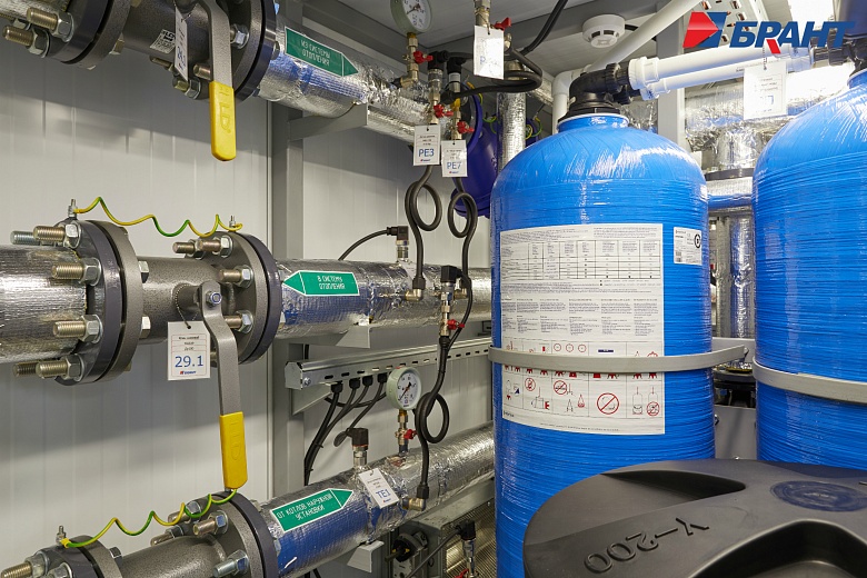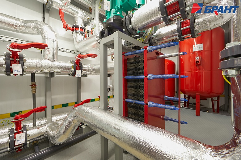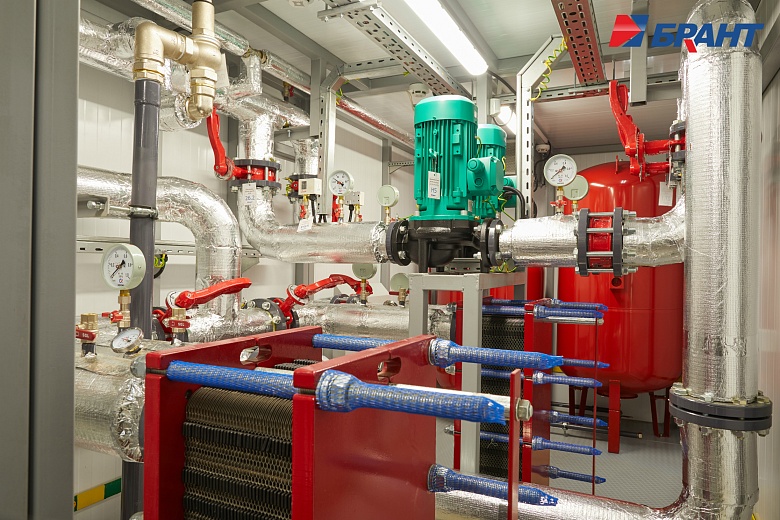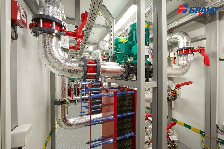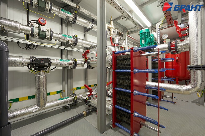 Тепловой модуль (БТП) применяется для подключения потребителей тепловой энергии, к котельным агрегатам наружного исполнения Valdex Termotechnica. БТП выполняет функции распределения тепловой энергии по системам теплопотребления, учета, регулирования и контроля параметров теплоносителя. Поставляется модулем заводской готовности. В тепловом модуле предусмотрено: - Контроль параметров теплоносителя; регулирование расхода теплоносителя и распределение его по системам потребления теплоты; отключение систем потребления теплоты. - Учет тепловых потоков и расходов теплоносителя. - Документирование параметров теплоносителя. - Контроль рационального использования тепловой энергии и проведение энергосберегающих мероприятий. - Охранно-пожарная сигнализация. - Дежурное отопление. - Вентиляция. - Диспетчеризация. Подключение системы теплоснабжения выполнено по независимой схеме с установкой разборных пластинчатых теплообменников. Для регулирования температуры воды в системе отопления по температурному графику в зависимости от температуры наружного воздуха предусмотрена установка контроллера входящего в состав шкафа автоматического управления тепловым модулем. Регулирующим органом служит трехходовой поворотный клапан с исполнительным механизмом - электроприводом с трехпозиционным управлением. На обратном трубопроводе котлового контура установлены четыре циркуляционных насоса (3 раб., 1 рез.) для обеспечения циркуляции теплоносителя. На обратном трубопроводе внутреннего контура установлены два циркуляционных насоса (1 раб., 1 рез.). Для защиты насосов от сухого хода предусмотрена установка реле давления. Предусмотрено автоматическое включение резервных насосов при аварийной остановке рабочих. В шкафу управления тепловым модулем установлены преобразователи частоты насосов. Подпитка и поддержание давления во внутреннем контуре выполняется в автоматическом режиме. Для контроля параметров теплоносителя предусмотрена установка манометров и биметаллических термометров. Трубопроводы: Сварные соединения выполнены в соответствии с ГОСТ 16037-80. Сварные работы производятся без установки оборудования и арматуры с использованием габаритных имитаторов. Монтаж оборудования и арматуры выполняется после проведения сварочных работ, удаления окалины, покраски и промывки трубопроводов. В блоках выполнен общий дренажный трубопровод из коррозионностойких материалов. Предохранительные клапаны подключены в общую дренажную линию с разрывом струи. Электромонтаж: Прокладка трасс автоматизации по блоку выполнена в заводских условиях. Подключение оборудования выполнено в шкаф управления. Корпус шкафов управления со степенью защиты не менее IP54. Прокладка кабелей по блоку выполнена в защитном лотке. От лотка до исполнительных механизмов, насосов и датчиков выполнена прокладка кабеля в гофре через сальниковые присоединения. Упаковка и маркировка: Маркировка запорной арматуры выполнена с помощью бирок. На трубопроводы нанесена маркировка направления движения теплоносителя. На реле давления предусмотрены таблички с указанием значения настройки. Документация в комплекте поставки включает декларацию соответствия ТР ТС 010/2011 и ТР ТС 020/2011 на блочный тепловой модуль, паспорт теплового модуля. Заводские испытания и контроль качества: 